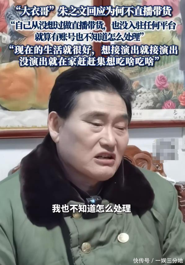 活得通透 很多人火了之后都会借着流量做直播带货赚钱,但大衣哥并不是这样,这不禁让人好奇这个人这么不爱钱吗? 直到看到他近日接受采访时说的那番话,才知道他活的有多通透,一来是他根本不会捣鼓这些账号,
